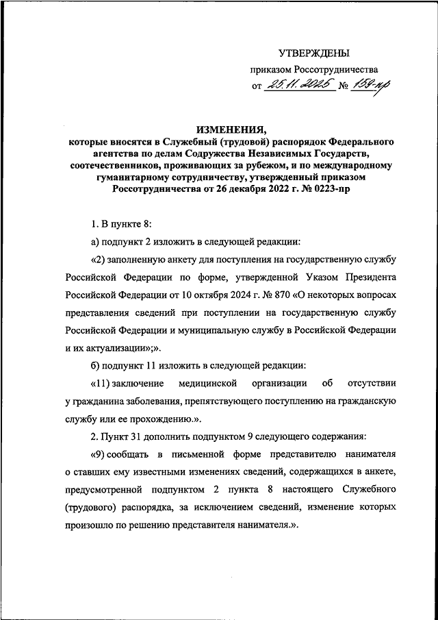 ПРИКАЗ Россотрудничества от 25.11.2025 N 159-пр