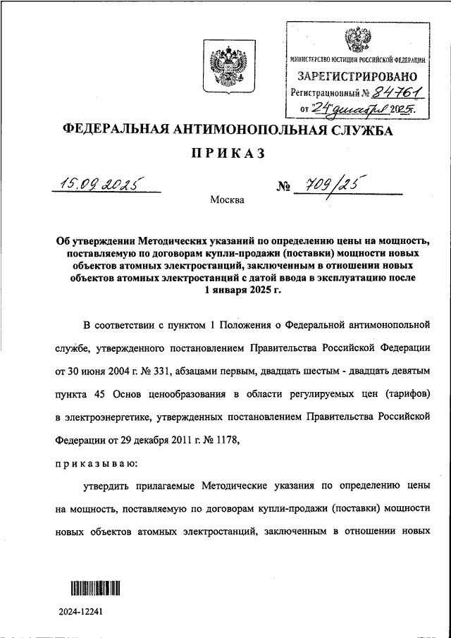 ПРИКАЗ Федеральной антимонопольной службы от 15.09.2025 N 709/25