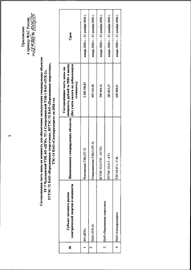 "ОБ УТВЕРЖДЕНИИ СОСТАВЛЯЮЩЕЙ ЧАСТИ ЦЕНЫ НА МОЩНОСТЬ ДЛЯ
