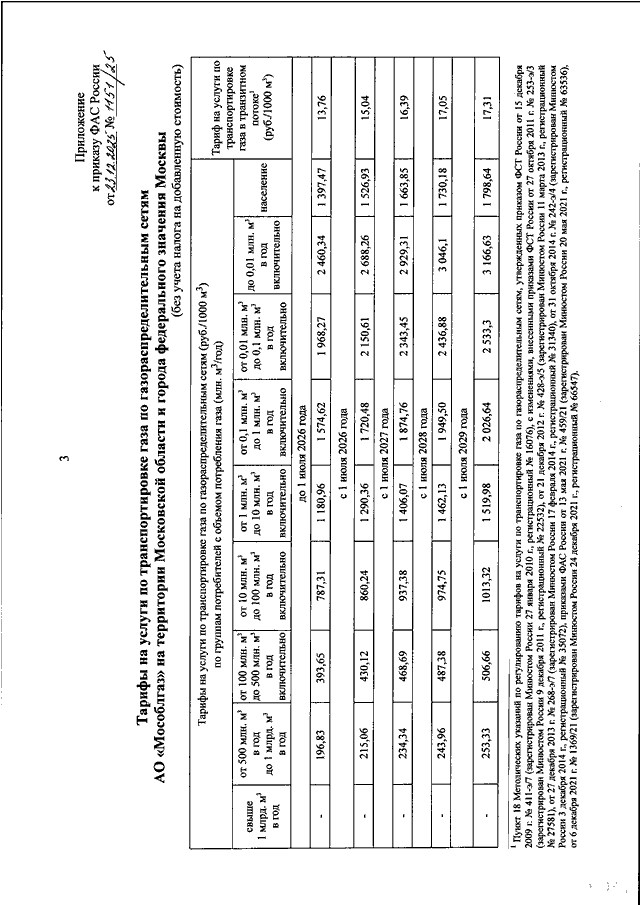 "ОБ УТВЕРЖДЕНИИ ТАРИФОВ НА УСЛУГИ ПО ТРАНСПОРТИРОВКЕ ГАЗА ПО ГАЗОРАСПРЕДЕЛИТЕЛЬНЫМ СЕТЯМ АО "МОСОБЛГАЗ" НА ТЕРРИТОРИИ МОСКОВСКОЙ ОБЛАСТИ И ГОРОДА ФЕДЕРАЛЬНОГО ЗНАЧЕНИЯ МОСКВЫ"