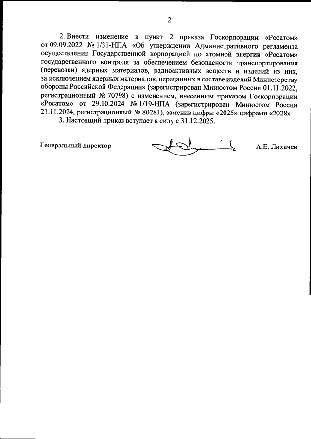 "Росатом" от 29.12.2025 N 1/34-НПА "О ВНЕСЕНИИ ИЗМЕНЕНИЙ В ПРИКАЗЫ ГОСКОРПОРАЦИИ "РОСАТОМ" ОТ 27.04.2022 N 1/11-НПА И ОТ 09.09.2022 N 1/31-НПА"