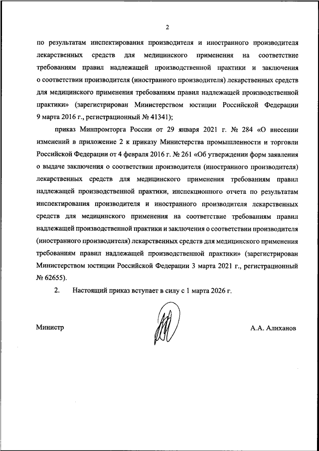 "О ПРИЗНАНИИ УТРАТИВШИМИ СИЛУ ПРИКАЗА МИНИСТЕРСТВА ПРОМЫШЛЕННОСТИ И ТОРГОВЛИ РОССИЙСКОЙ ФЕДЕРАЦИИ ОТ 4 ФЕВРАЛЯ 2016 Г. N 261 "ОБ УТВЕРЖДЕНИИ ФОРМ ЗАЯВЛЕНИЯ О ВЫДАЧЕ ЗАКЛЮЧЕНИЯ О СООТВЕТСТВИИ ПРОИЗВОДИТЕЛЯ (ИНОСТРАННОГО ПРОИЗВОДИТЕЛЯ) ЛЕКАРСТВЕННЫХ СРЕДСТВ ДЛЯ МЕДИЦИНСКОГО ПРИМЕНЕНИЯ ТРЕБОВАНИЯМ ПРАВИЛ НАДЛЕЖАЩЕЙ ПРОИЗВОДСТВЕННОЙ ПРАКТИКИ, ИНСПЕКЦИОННОГО ОТЧЕТА ПО РЕЗУЛЬТАТАМ ИНСПЕКТИРОВАНИЯ ПРОИЗВОДИТЕЛЯ И ИНОСТРАННОГО ПРОИЗВОДИТЕЛЯ ЛЕКАРСТВЕННЫХ СРЕДСТВ ДЛЯ МЕДИЦИНСКОГО ПРИМЕНЕНИЯ НА СООТВЕТСТВИЕ ТРЕБОВАНИЯМ ПРАВИЛ НАДЛЕЖАЩЕЙ ПРОИЗВОДСТВЕННОЙ ПРАКТИКИ И ЗАКЛЮЧЕНИЯ О СООТВЕТСТВИИ ПРОИЗВОДИТЕЛЯ (ИНОСТРАННОГО ПРОИЗВОДИТЕЛЯ) ЛЕКАРСТВЕННЫХ СРЕДСТВ ДЛЯ МЕДИЦИНСКОГО ПРИМЕНЕНИЯ ТРЕБОВАНИЯМ ПРАВИЛ НАДЛЕЖАЩЕЙ ПРОИЗВОДСТВЕННОЙ ПРАКТИКИ" И ВНЕСЕННЫХ В НЕГО ИЗМЕНЕНИЙ"