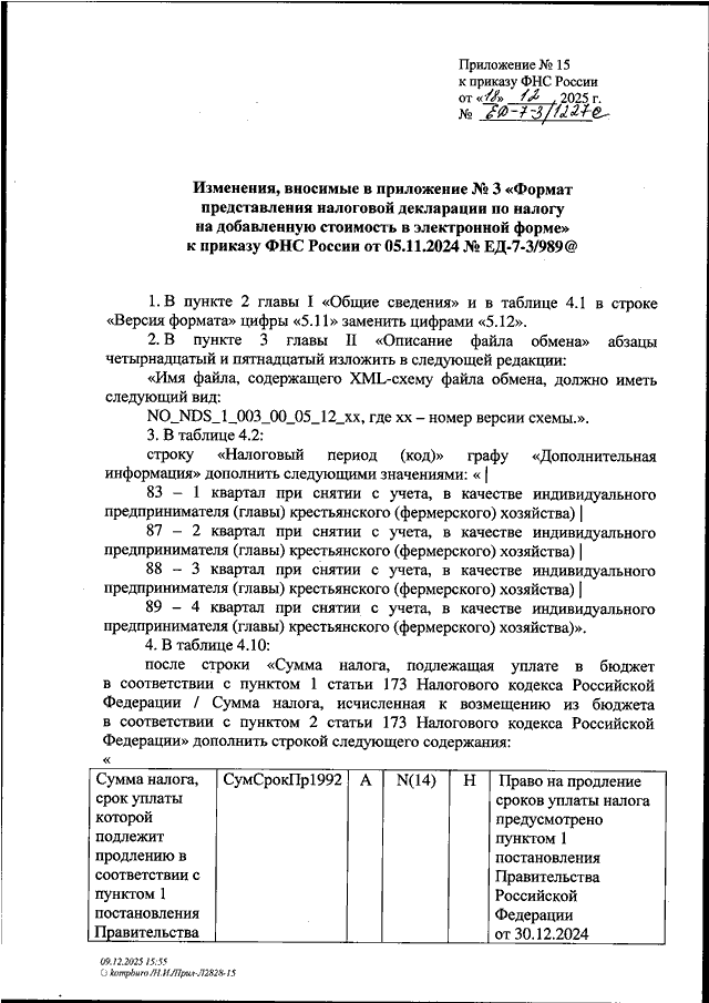 "О ВНЕСЕНИИ ИЗМЕНЕНИЙ В ПРИЛОЖЕНИЯ К ПРИКАЗУ ФЕДЕРАЛЬНОЙ НАЛОГОВОЙ СЛУЖБЫ ОТ 05.11.2024 N ЕД-7-3/989@"