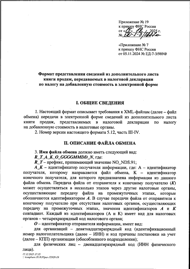 "О ВНЕСЕНИИ ИЗМЕНЕНИЙ В ПРИЛОЖЕНИЯ К ПРИКАЗУ ФЕДЕРАЛЬНОЙ НАЛОГОВОЙ СЛУЖБЫ ОТ 05.11.2024 N ЕД-7-3/989@"
