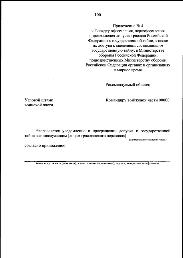 "ОБ УСТАНОВЛЕНИИ ПОРЯДКА ОФОРМЛЕНИЯ, ПЕРЕОФОРМЛЕНИЯ И ПРЕКРАЩЕНИЯ ДОПУСКА ГРАЖДАН РОССИЙСКОЙ ФЕДЕРАЦИИ К ГОСУДАРСТВЕННОЙ ТАЙНЕ, А ТАКЖЕ ИХ ДОСТУПА К СВЕДЕНИЯМ, СОСТАВЛЯЮЩИМ ГОСУДАРСТВЕННУЮ ТАЙНУ, В МИНИСТЕРСТВЕ ОБОРОНЫ РОССИЙСКОЙ ФЕДЕРАЦИИ, ПОДВЕДОМСТВЕННЫХ МИНИСТЕРСТВУ ОБОРОНЫ РОССИЙСКОЙ ФЕДЕРАЦИИ ОРГАНАХ И ОРГАНИЗАЦИЯХ В МИРНОЕ ВРЕМЯ"