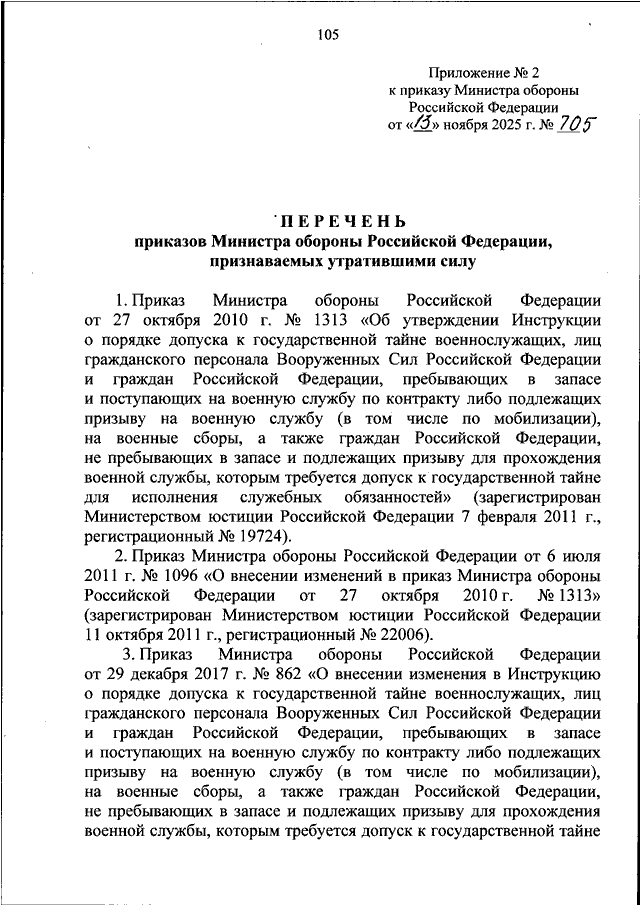 ПРИКАЗ Минобороны РФ от 13.11.2025 N 705