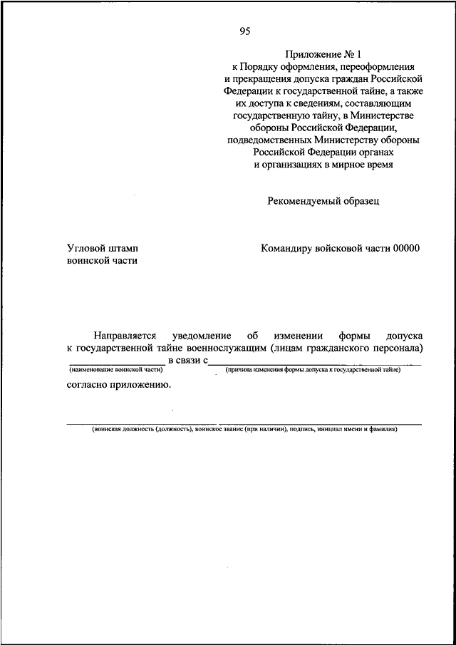 "ОБ УСТАНОВЛЕНИИ ПОРЯДКА ОФОРМЛЕНИЯ, ПЕРЕОФОРМЛЕНИЯ И ПРЕКРАЩЕНИЯ ДОПУСКА ГРАЖДАН РОССИЙСКОЙ ФЕДЕРАЦИИ К ГОСУДАРСТВЕННОЙ ТАЙНЕ, А ТАКЖЕ ИХ ДОСТУПА К СВЕДЕНИЯМ, СОСТАВЛЯЮЩИМ ГОСУДАРСТВЕННУЮ ТАЙНУ, В МИНИСТЕРСТВЕ ОБОРОНЫ РОССИЙСКОЙ ФЕДЕРАЦИИ, ПОДВЕДОМСТВЕННЫХ МИНИСТЕРСТВУ ОБОРОНЫ РОССИЙСКОЙ ФЕДЕРАЦИИ ОРГАНАХ И ОРГАНИЗАЦИЯХ В МИРНОЕ ВРЕМЯ"