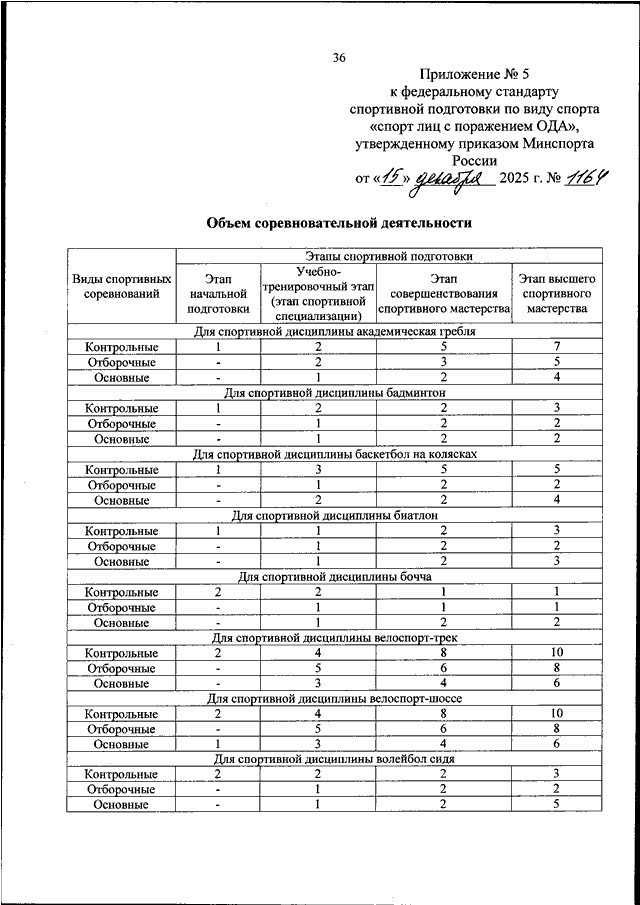 ПРИКАЗ Минспорта РФ от 15.12.2025 N 1164