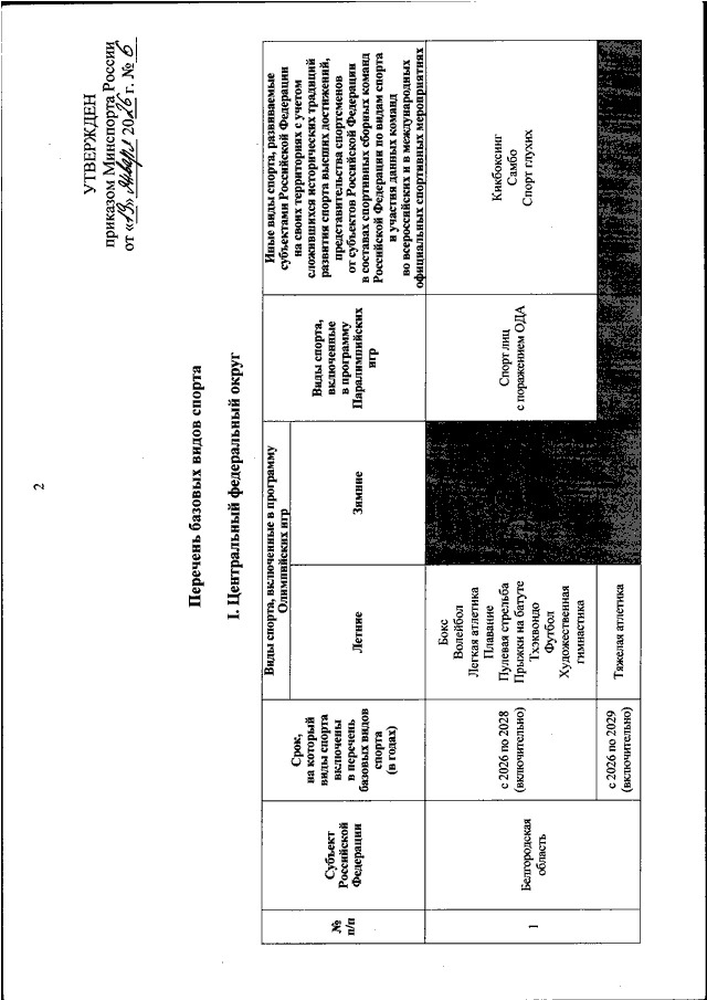 ПРИКАЗ Минспорта РФ от 19.01.2026 N 6