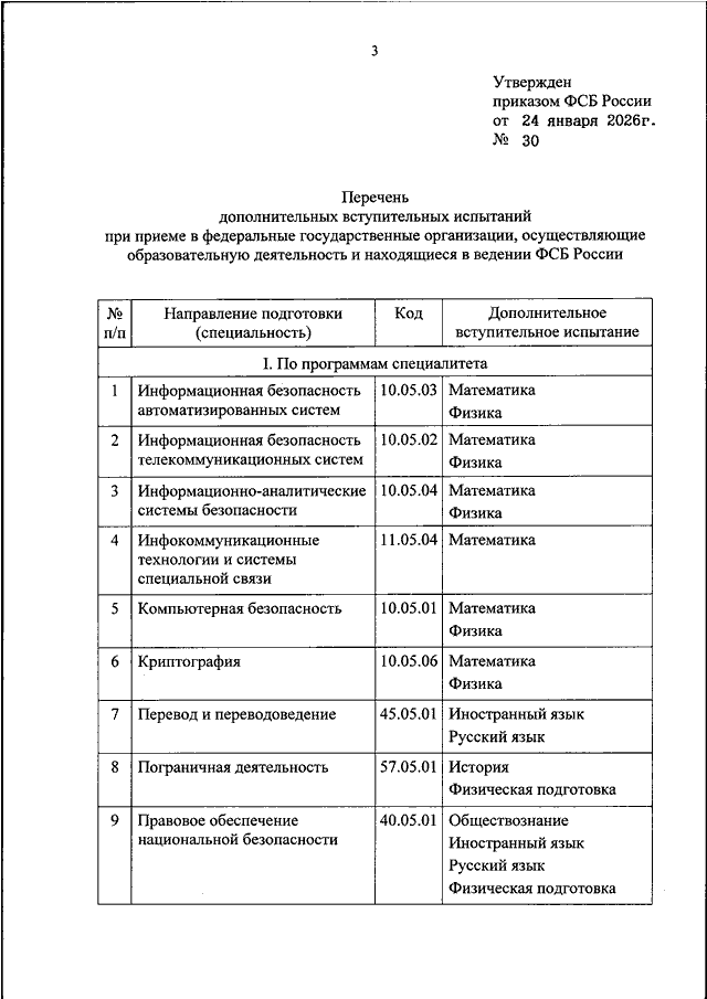 ПРИКАЗ ФСБ РФ от 24.01.2026 N 30