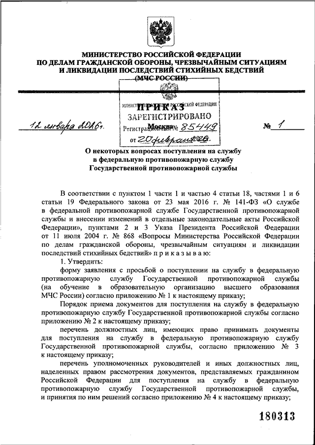 ПРИКАЗ МЧС РФ от 12.01.2026 N 1