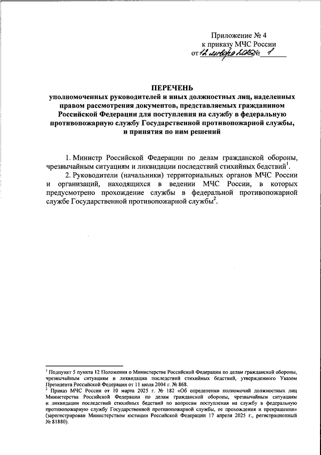 ПРИКАЗ МЧС РФ от 12.01.2026 N 1