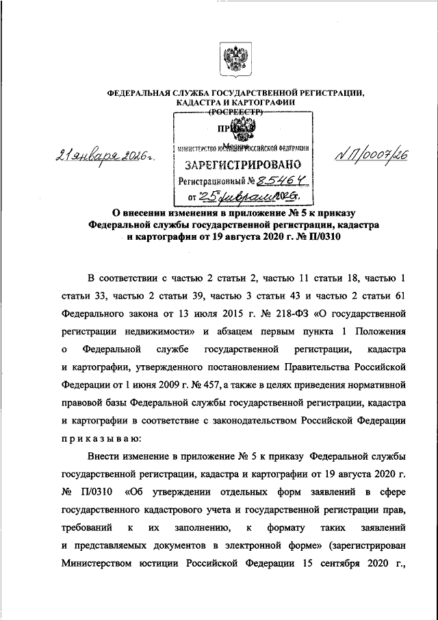 ПРИКАЗ Росреестра от 21.01.2026 N П/0007/26