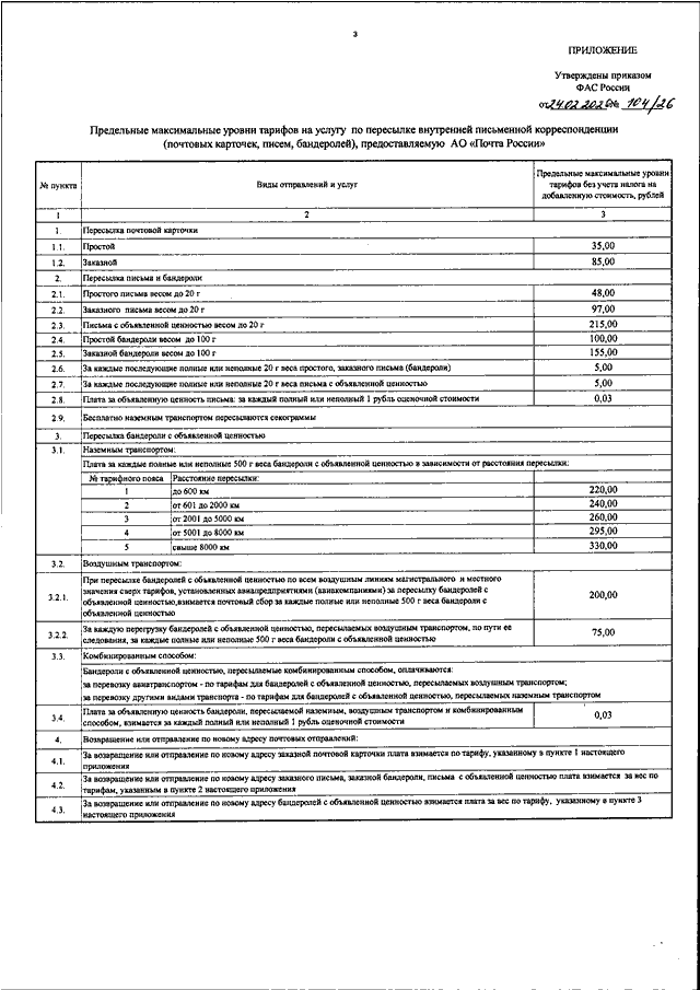 "ОБ УТВЕРЖДЕНИИ ПРЕДЕЛЬНЫХ МАКСИМАЛЬНЫХ УРОВНЕЙ ТАРИФОВ НА УСЛУГУ ПО ПЕРЕСЫЛКЕ ВНУТРЕННЕЙ ПИСЬМЕННОЙ КОРРЕСПОНДЕНЦИИ (ПОЧТОВЫХ КАРТОЧЕК, ПИСЕМ, БАНДЕРОЛЕЙ), ПРЕДОСТАВЛЯЕМУЮ АО "ПОЧТА РОССИИ"