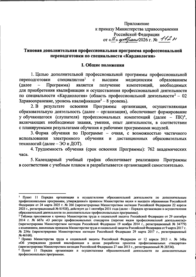 "ОБ УТВЕРЖДЕНИИ ТИПОВОЙ ДОПОЛНИТЕЛЬНОЙ ПРОФЕССИОНАЛЬНОЙ ПРОГРАММЫ ПРОФЕССИОНАЛЬНОЙ ПЕРЕПОДГОТОВКИ ПО СПЕЦИАЛЬНОСТИ "КАРДИОЛОГИЯ"