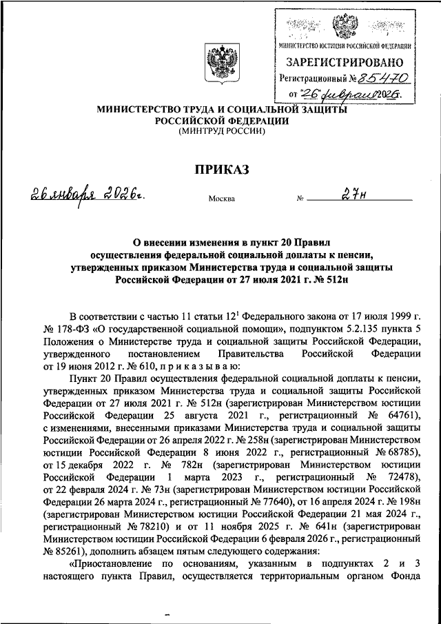(Зарегистрировано в Минюсте РФ 26.02.2026 N 85470)