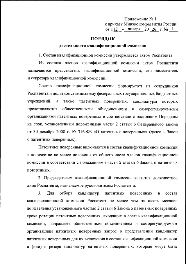 (вместе с "ПОРЯДКОМ ДЕЯТЕЛЬНОСТИ КВАЛИФИКАЦИОННОЙ КОМИССИИ", "ПОРЯДКОМ ДЕЯТЕЛЬНОСТИ АПЕЛЛЯЦИОННОЙ КОМИССИИ", "ПОРЯДКОМ ВЕДЕНИЯ РЕЕСТРА ПАТЕНТНЫХ ПОВЕРЕННЫХ РОССИЙСКОЙ ФЕДЕРАЦИИ") (Зарегистрировано в Минюсте РФ 27.02.2026 N 85492)