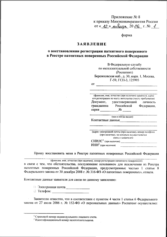 ПРИКАЗ Минэкономразвития РФ от 12.01.2026 N 1
