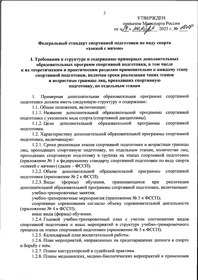 ПРИКАЗ Минспорта РФ от 24.11.2025 N 1018