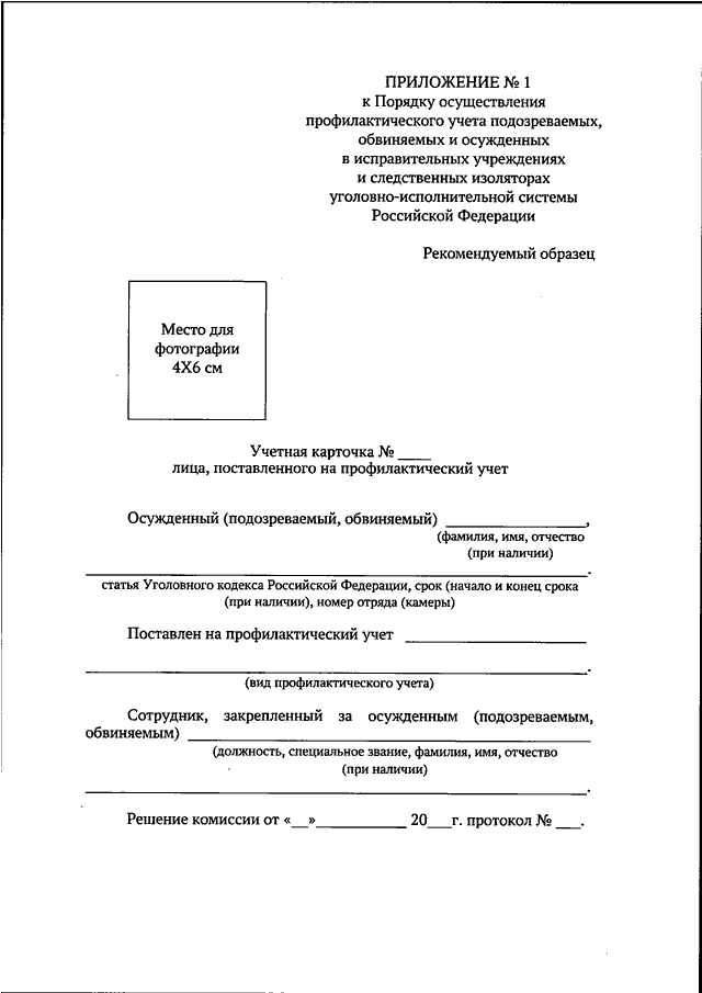"ОБ УТВЕРЖДЕНИИ ПОРЯДКА ОСУЩЕСТВЛЕНИЯ ПРОФИЛАКТИЧЕСКОГО УЧЕТА ПОДОЗРЕВАЕМЫХ, ОБВИНЯЕМЫХ И ОСУЖДЕННЫХ В ИСПРАВИТЕЛЬНЫХ УЧРЕЖДЕНИЯХ И СЛЕДСТВЕННЫХ ИЗОЛЯТОРАХ УГОЛОВНО - ИСПОЛНИТЕЛЬНОЙ СИСТЕМЫ РОССИЙСКОЙ ФЕДЕРАЦИИ"