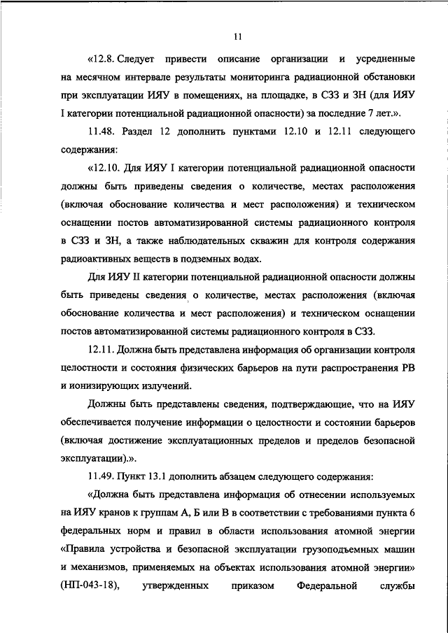 "О ВНЕСЕНИИ ИЗМЕНЕНИЙ В ФЕДЕРАЛЬНЫЕ НОРМЫ И ПРАВИЛА В ОБЛАСТИ ИСПОЛЬЗОВАНИЯ АТОМНОЙ ЭНЕРГИИ "ТРЕБОВАНИЯ К СОДЕРЖАНИЮ ОТЧЕТА ПО ОБОСНОВАНИЮ БЕЗОПАСНОСТИ ИССЛЕДОВАТЕЛЬСКИХ ЯДЕРНЫХ УСТАНОВОК" (НП-049-17), УТВЕРЖДЕННЫЕ ПРИКАЗОМ ФЕДЕРАЛЬНОЙ СЛУЖБЫ ПО ЭКОЛОГИЧЕСКОМУ, ТЕХНОЛОГИЧЕСКОМУ И АТОМНОМУ НАДЗОРУ ОТ 5 ДЕКАБРЯ 2017 Г. N 528"