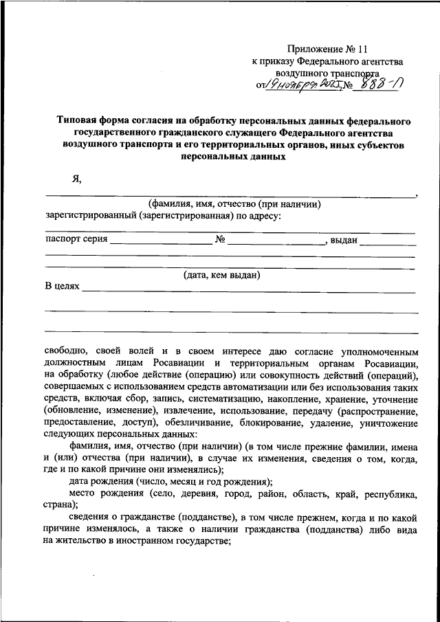 "ОБ ОБРАБОТКЕ ПЕРСОНАЛЬНЫХ ДАННЫХ В ФЕДЕРАЛЬНОМ АГЕНТСТВЕ ВОЗДУШНОГО ТРАНСПОРТА И ЕГО ТЕРРИТОРИАЛЬНЫХ ОРГАНАХ"