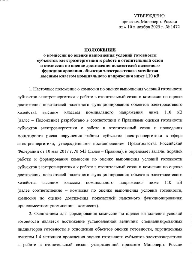 ПРИКАЗ Минэнерго РФ от 10.11.2025 N 1472