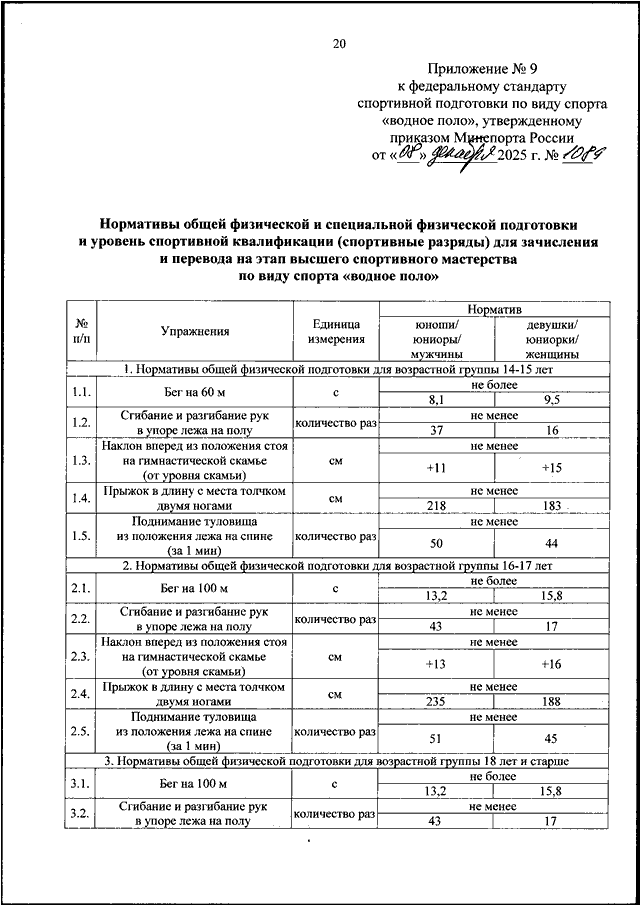 ПРИКАЗ Минспорта РФ от 08.12.2025 N 1089