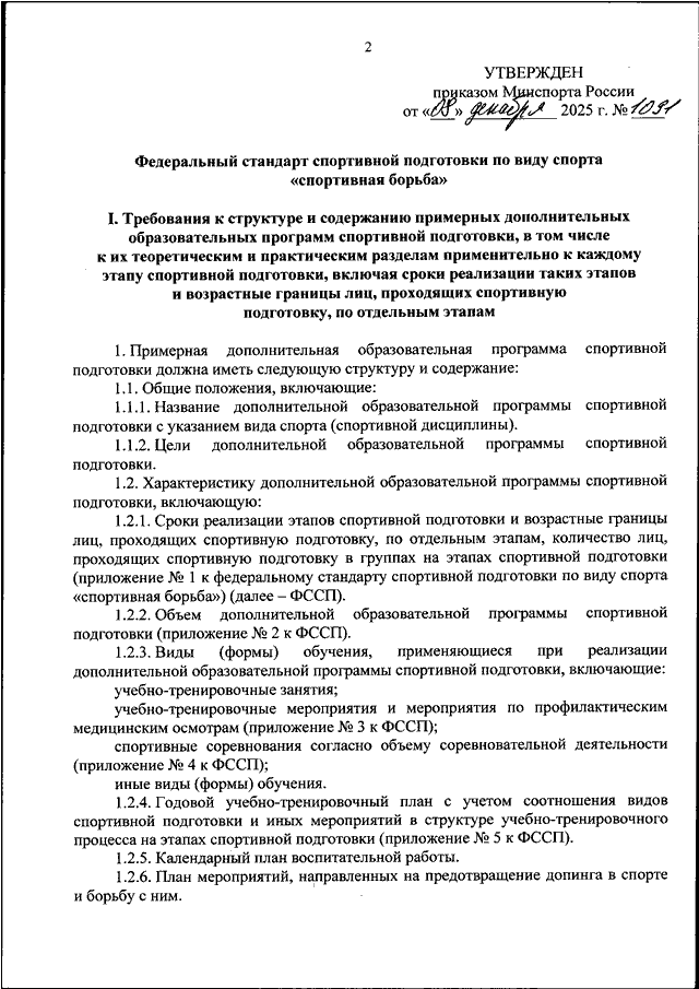 ПРИКАЗ Минспорта РФ от 08.12.2025 N 1091