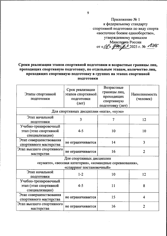 ПРИКАЗ Минспорта РФ от 08.12.2025 N 1096