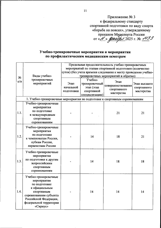 ПРИКАЗ Минспорта РФ от 11.12.2025 N 1133