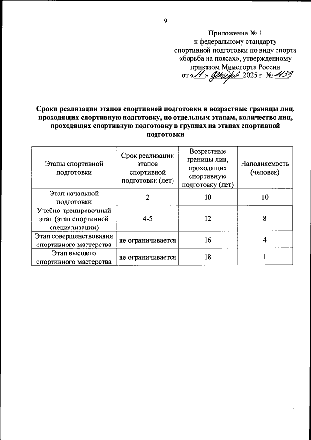 ПРИКАЗ Минспорта РФ от 11.12.2025 N 1133
