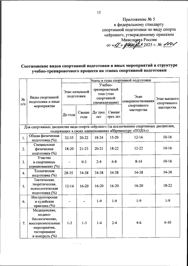 ПРИКАЗ Минспорта РФ от 12.12.2025 N 1141
