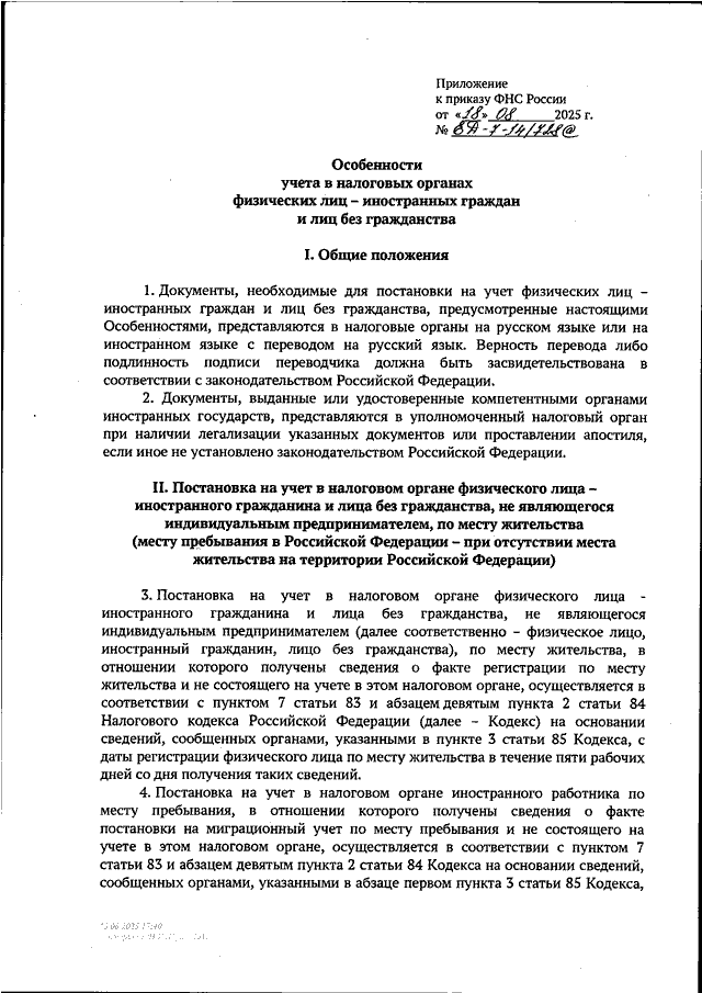 "ОБ УТВЕРЖДЕНИИ ОСОБЕННОСТЕЙ УЧЕТА В НАЛОГОВЫХ ОРГАНАХ ФИЗИЧЕСКИХ ЛИЦ - ИНОСТРАННЫХ ГРАЖДАН И ЛИЦ БЕЗ ГРАЖДАНСТВА"