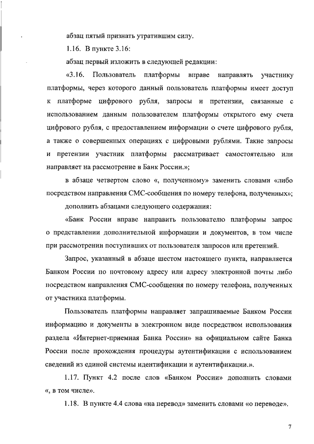 "О ВНЕСЕНИИ ИЗМЕНЕНИЙ В ПОЛОЖЕНИЕ БАНКА РОССИИ ОТ 3 АВГУСТА 2023 Г. N 820-П "О ПЛАТФОРМЕ ЦИФРОВОГО РУБЛЯ"