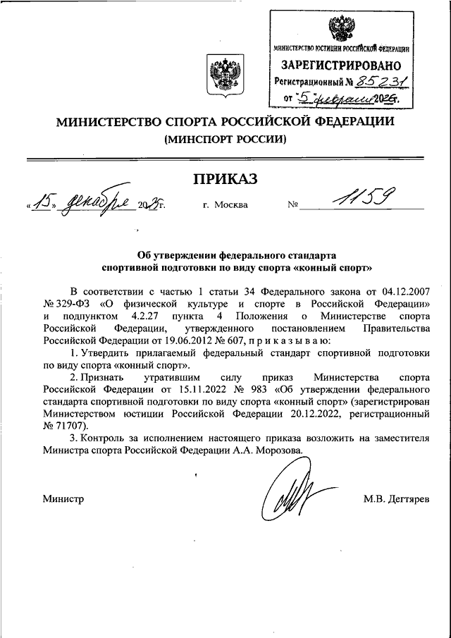 ПРИКАЗ Минспорта РФ от 15.12.2025 N 1159
