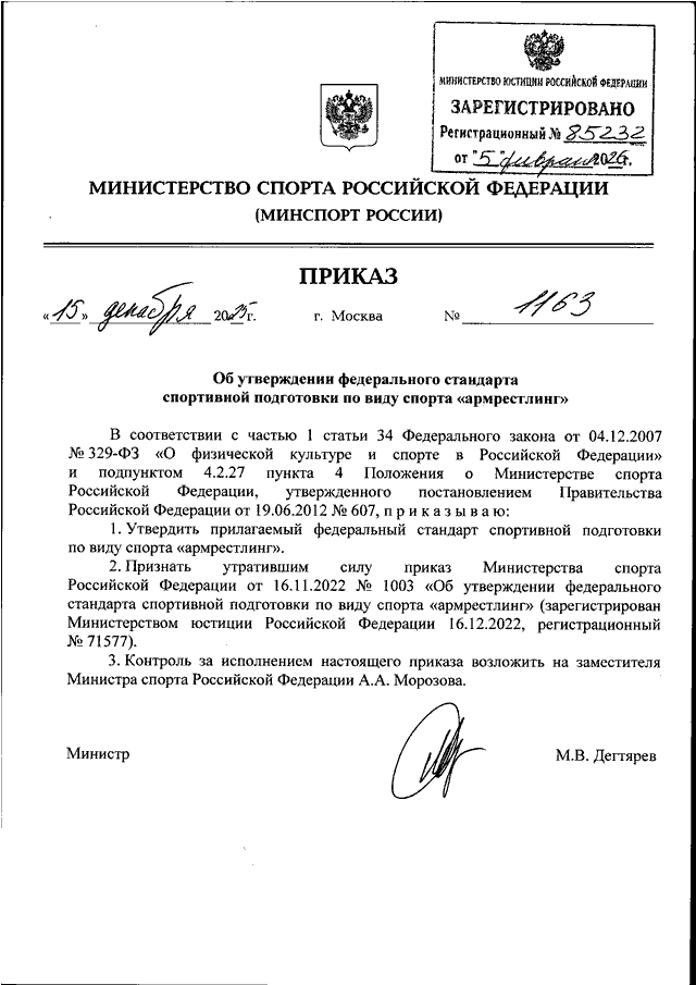 ПРИКАЗ Минспорта РФ от 15.12.2025 N 1163