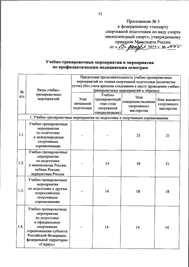 ПРИКАЗ Минспорта РФ от 15.12.2025 N 1166