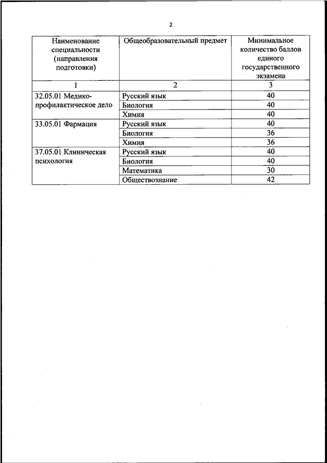 "ОБ УСТАНОВЛЕНИИ МИНИМАЛЬНОГО КОЛИЧЕСТВА БАЛЛОВ ЕДИНОГО ГОСУДАРСТВЕННОГО ЭКЗАМЕНА ПО ОБЩЕОБРАЗОВАТЕЛЬНЫМ ПРЕДМЕТАМ, СООТВЕТСТВУЮЩИМ СПЕЦИАЛЬНОСТИ ИЛИ НАПРАВЛЕНИЮ ПОДГОТОВКИ, ПО КОТОРЫМ ПРОВОДИТСЯ ПРИЕМ НА ОБУЧЕНИЕ В ОБРАЗОВАТЕЛЬНЫХ ОРГАНИЗАЦИЯХ, НАХОДЯЩИХСЯ В ВЕДЕНИИ МИНИСТЕРСТВА ЗДРАВООХРАНЕНИЯ РОССИЙСКОЙ ФЕДЕРАЦИИ, НА 2026 ГОД"