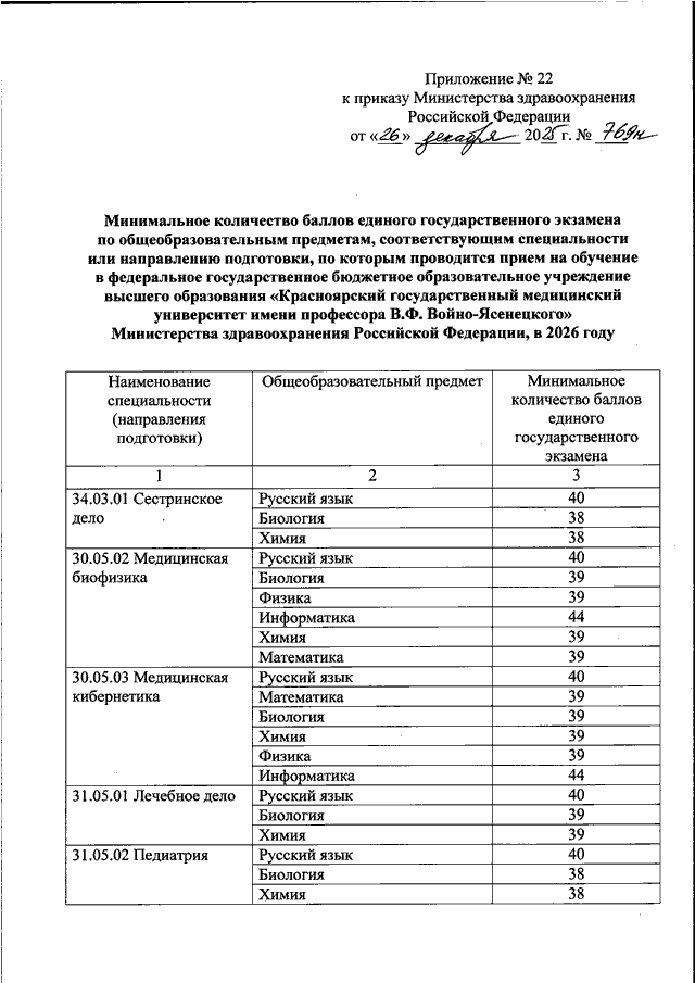 ПРИКАЗ Минздрава РФ от 26.12.2025 N 769н
