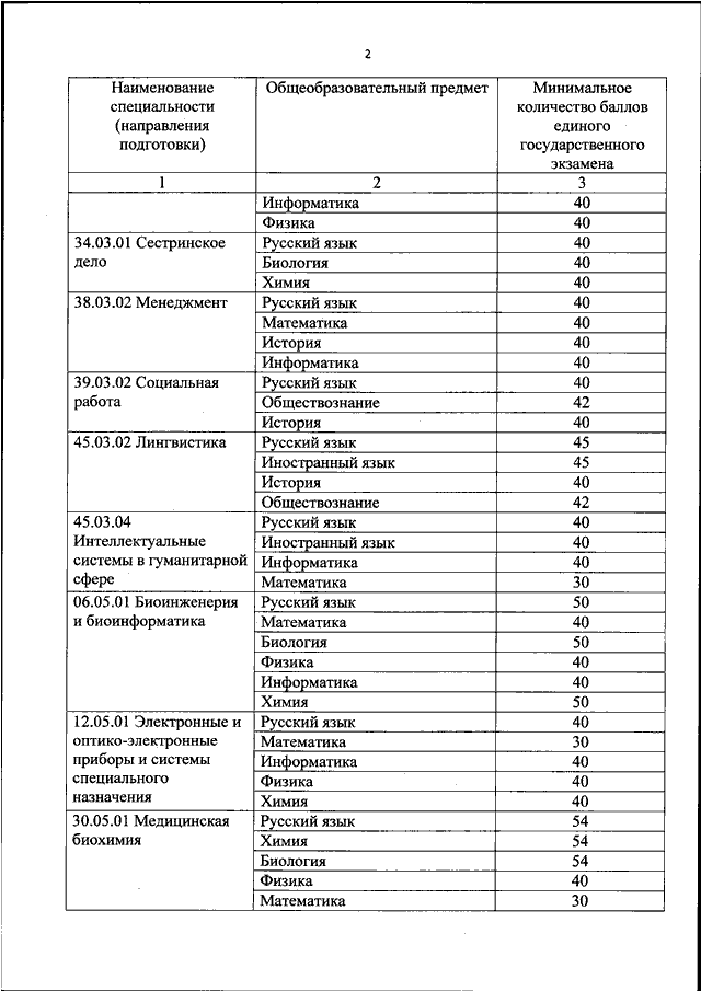 "ОБ УСТАНОВЛЕНИИ МИНИМАЛЬНОГО КОЛИЧЕСТВА БАЛЛОВ ЕДИНОГО ГОСУДАРСТВЕННОГО ЭКЗАМЕНА ПО ОБЩЕОБРАЗОВАТЕЛЬНЫМ ПРЕДМЕТАМ, СООТВЕТСТВУЮЩИМ СПЕЦИАЛЬНОСТИ ИЛИ НАПРАВЛЕНИЮ ПОДГОТОВКИ, ПО КОТОРЫМ ПРОВОДИТСЯ ПРИЕМ НА ОБУЧЕНИЕ В ОБРАЗОВАТЕЛЬНЫХ ОРГАНИЗАЦИЯХ, НАХОДЯЩИХСЯ В ВЕДЕНИИ МИНИСТЕРСТВА ЗДРАВООХРАНЕНИЯ РОССИЙСКОЙ ФЕДЕРАЦИИ, НА 2026 ГОД"