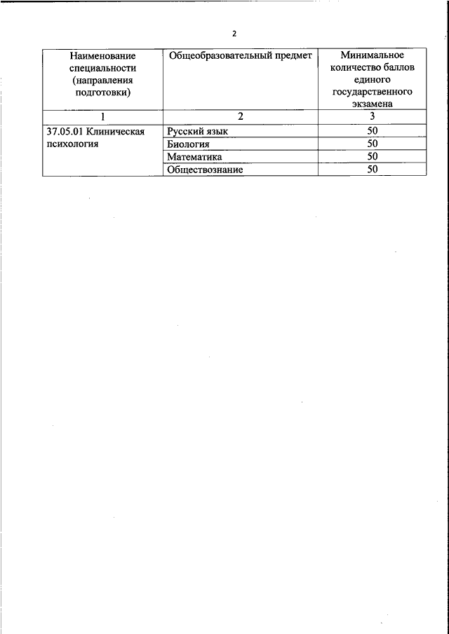 "ОБ УСТАНОВЛЕНИИ МИНИМАЛЬНОГО КОЛИЧЕСТВА БАЛЛОВ ЕДИНОГО ГОСУДАРСТВЕННОГО ЭКЗАМЕНА ПО ОБЩЕОБРАЗОВАТЕЛЬНЫМ ПРЕДМЕТАМ, СООТВЕТСТВУЮЩИМ СПЕЦИАЛЬНОСТИ ИЛИ НАПРАВЛЕНИЮ ПОДГОТОВКИ, ПО КОТОРЫМ ПРОВОДИТСЯ ПРИЕМ НА ОБУЧЕНИЕ В ОБРАЗОВАТЕЛЬНЫХ ОРГАНИЗАЦИЯХ, НАХОДЯЩИХСЯ В ВЕДЕНИИ МИНИСТЕРСТВА ЗДРАВООХРАНЕНИЯ РОССИЙСКОЙ ФЕДЕРАЦИИ, НА 2026 ГОД"
