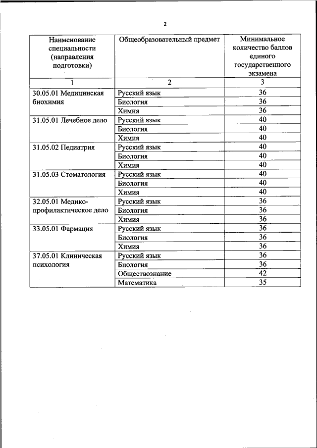 "ОБ УСТАНОВЛЕНИИ МИНИМАЛЬНОГО КОЛИЧЕСТВА БАЛЛОВ ЕДИНОГО ГОСУДАРСТВЕННОГО ЭКЗАМЕНА ПО ОБЩЕОБРАЗОВАТЕЛЬНЫМ ПРЕДМЕТАМ, СООТВЕТСТВУЮЩИМ СПЕЦИАЛЬНОСТИ ИЛИ НАПРАВЛЕНИЮ ПОДГОТОВКИ, ПО КОТОРЫМ ПРОВОДИТСЯ ПРИЕМ НА ОБУЧЕНИЕ В ОБРАЗОВАТЕЛЬНЫХ ОРГАНИЗАЦИЯХ, НАХОДЯЩИХСЯ В ВЕДЕНИИ МИНИСТЕРСТВА ЗДРАВООХРАНЕНИЯ РОССИЙСКОЙ ФЕДЕРАЦИИ, НА 2026 ГОД"