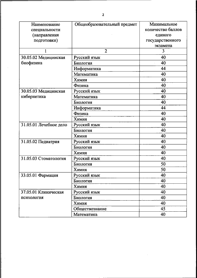 "ОБ УСТАНОВЛЕНИИ МИНИМАЛЬНОГО КОЛИЧЕСТВА БАЛЛОВ ЕДИНОГО ГОСУДАРСТВЕННОГО ЭКЗАМЕНА ПО ОБЩЕОБРАЗОВАТЕЛЬНЫМ ПРЕДМЕТАМ, СООТВЕТСТВУЮЩИМ СПЕЦИАЛЬНОСТИ ИЛИ НАПРАВЛЕНИЮ ПОДГОТОВКИ, ПО КОТОРЫМ ПРОВОДИТСЯ ПРИЕМ НА ОБУЧЕНИЕ В ОБРАЗОВАТЕЛЬНЫХ ОРГАНИЗАЦИЯХ, НАХОДЯЩИХСЯ В ВЕДЕНИИ МИНИСТЕРСТВА ЗДРАВООХРАНЕНИЯ РОССИЙСКОЙ ФЕДЕРАЦИИ, НА 2026 ГОД"