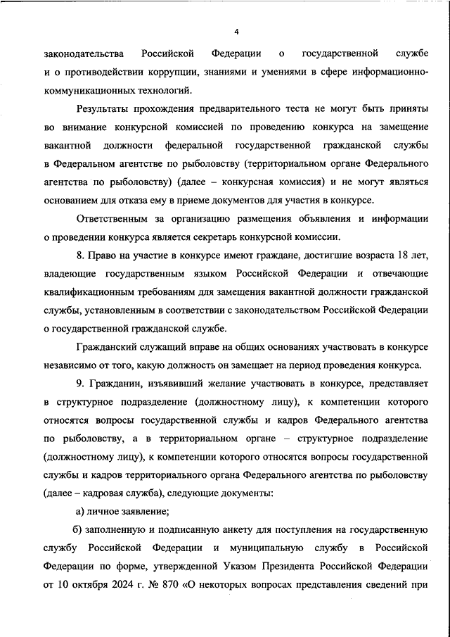 "ОБ УТВЕРЖДЕНИИ МЕТОДИКИ ПРОВЕДЕНИЯ КОНКУРСА НА ЗАМЕЩЕНИЕ ВАКАНТНОЙ ДОЛЖНОСТИ ФЕДЕРАЛЬНОЙ ГОСУДАРСТВЕННОЙ ГРАЖДАНСКОЙ СЛУЖБЫ В ФЕДЕРАЛЬНОМ АГЕНТСТВЕ ПО РЫБОЛОВСТВУ, А ТАКЖЕ ПОРЯДКА И СРОКОВ РАБОТЫ КОНКУРСНОЙ КОМИССИИ ПО ПРОВЕДЕНИЮ КОНКУРСА НА ЗАМЕЩЕНИЕ ВАКАНТНОЙ ДОЛЖНОСТИ ФЕДЕРАЛЬНОЙ ГОСУДАРСТВЕННОЙ ГРАЖДАНСКОЙ СЛУЖБЫ В ФЕДЕРАЛЬНОМ АГЕНТСТВЕ ПО РЫБОЛОВСТВУ"