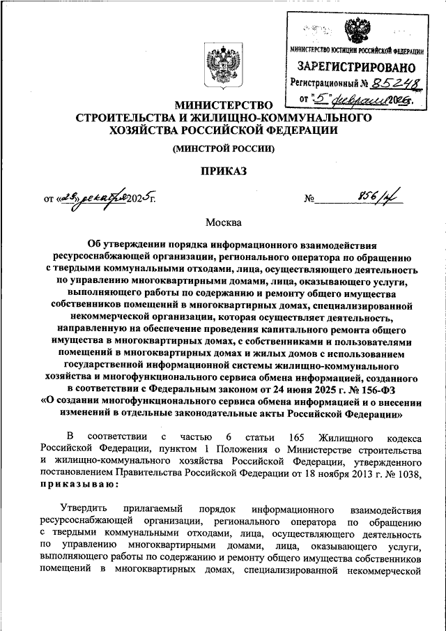 ПРИКАЗ Минстроя РФ от 29.12.2025 N 856/пр