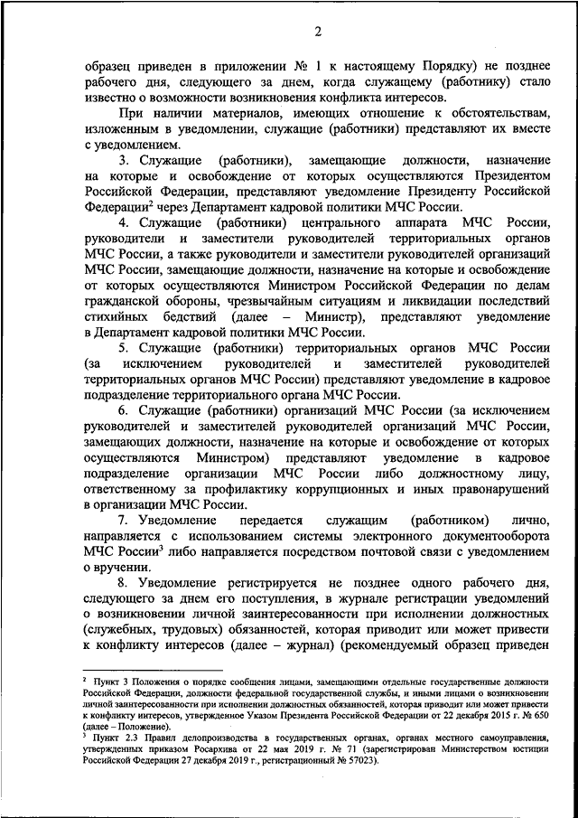 "ОБ УТВЕРЖДЕНИИ ПОРЯДКА УВЕДОМЛЕНИЯ ВОЕННОСЛУЖАЩИМИ СПАСАТЕЛЬНЫХ ВОИНСКИХ ФОРМИРОВАНИЙ МЧС РОССИИ, СОТРУДНИКАМИ ФЕДЕРАЛЬНОЙ ПРОТИВОПОЖАРНОЙ СЛУЖБЫ ГОСУДАРСТВЕННОЙ ПРОТИВОПОЖАРНОЙ СЛУЖБЫ, ФЕДЕРАЛЬНЫМИ ГОСУДАРСТВЕННЫМИ ГРАЖДАНСКИМИ СЛУЖАЩИМИ МЧС РОССИИ И ЕГО ТЕРРИТОРИАЛЬНЫХ ОРГАНОВ И РАБОТНИКАМИ, ЗАМЕЩАЮЩИМИ ОТДЕЛЬНЫЕ ДОЛЖНОСТИ НА ОСНОВАНИИ ТРУДОВОГО ДОГОВОРА В ОРГАНИЗАЦИЯХ, СОЗДАННЫХ ДЛЯ ВЫПОЛНЕНИЯ ЗАДАЧ, ПОСТАВЛЕННЫХ ПЕРЕД МЧС РОССИИ, О ВОЗНИКНОВЕНИИ ЛИЧНОЙ ЗАИНТЕРЕСОВАННОСТИ ПРИ ИСПОЛНЕНИИ ДОЛЖНОСТНЫХ (СЛУЖЕБНЫХ, ТРУДОВЫХ) ОБЯЗАННОСТЕЙ, КОТОРАЯ ПРИВОДИТ ИЛИ МОЖЕТ ПРИВЕСТИ К КОНФЛИКТУ ИНТЕРЕСОВ"