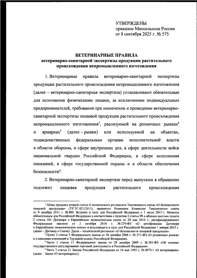 ПРИКАЗ Минсельхоза РФ от 08.09.2025 N 575