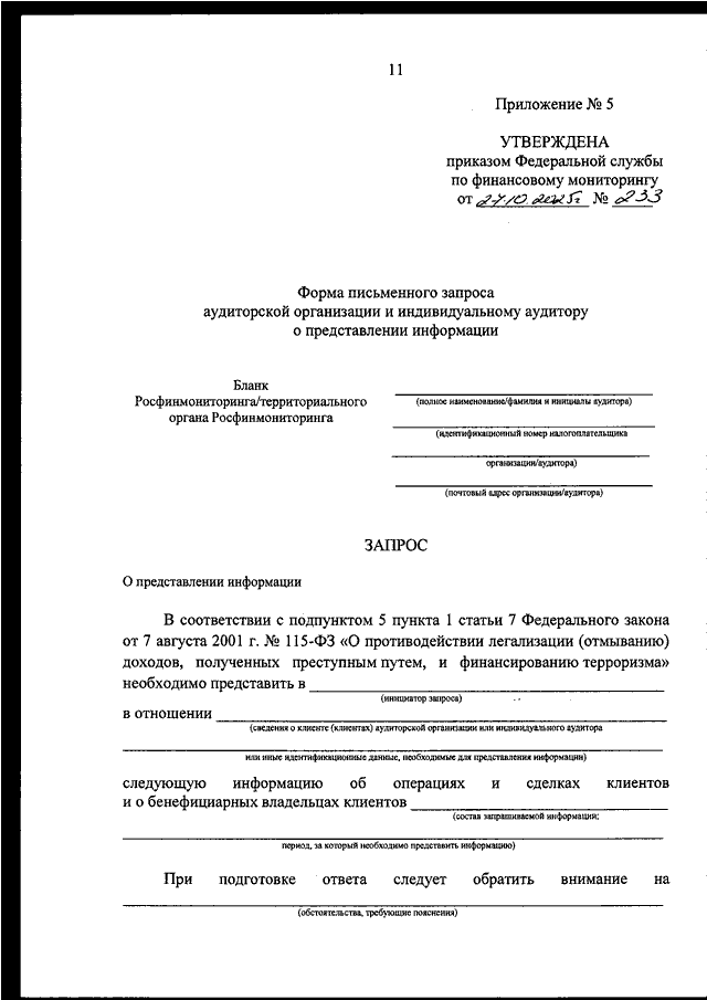 ПРИКАЗ Росфинмониторинга от 27.10.2025 N 233
