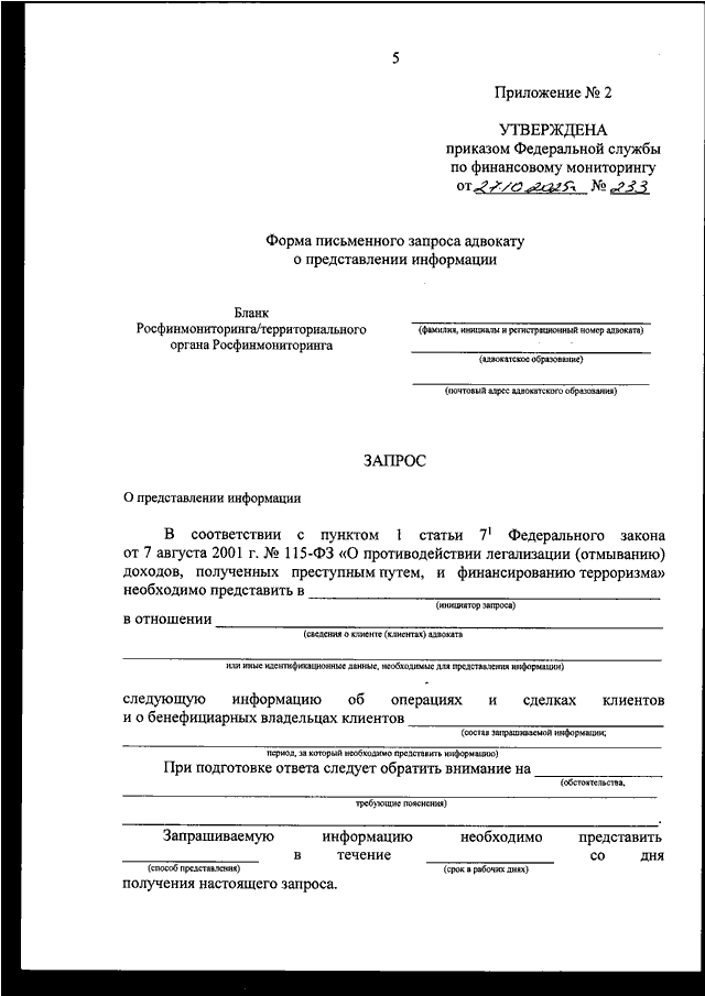 ПРИКАЗ Росфинмониторинга от 27.10.2025 N 233